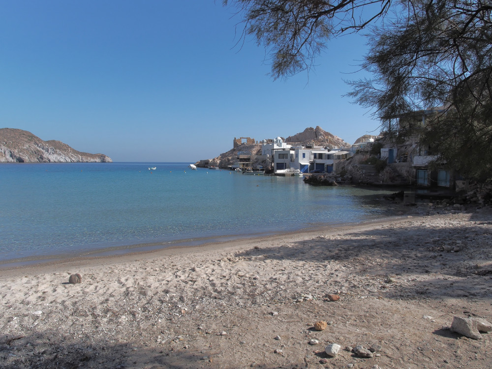 Milos ist etwas anders als die meisten Kykladeninseln. Zwar erinnert ihre Form ein wenig an Santorin, denn auch die heutige Gestalt von Milos entstand durch einen heftigen Vulkanausbruch, wobei der weggesprengte Vulkankegel eine große Kaldera hinterließ. Eindrucksvoll ist die Einfahrt in diese Kaldera, vorbei an schroffen Klippen und Inselchen. Bald passiert die Fähre Klima und andere kleine Orte am Ufer, wo sich die Fischerhäuser statt im kykladischen Weiß-Blau in bunter Vielfalt zeigen. Und noch ist Milos recht wenig vom Tourismus erfasst, es sind besonders viele Griechen, die hier Urlaub machen. Dank des kleinen Flughafens ist die Insel von Athen aus schnell erreichbar, sodass im Sommer besonders an Wochenenden viele Athener hier ihr Sommerdomizil aufsuchen.