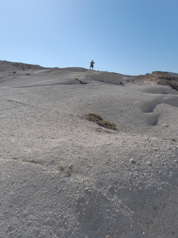 Richtung Osten erreicht man Sarakiniko, von Wind und Wetter geformte schneeweiße Bimssteinfelsen. Es gibt dort auch eine kleine Badebucht.