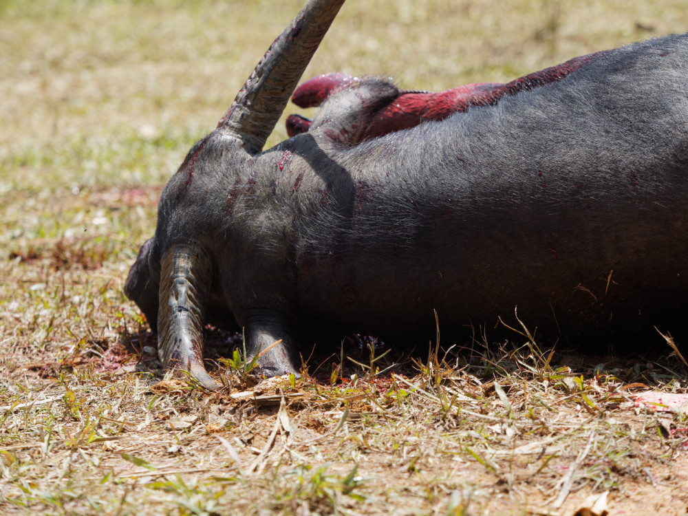 ACHTUNG: Die folgenden Fotos zeigen unter anderem die Tötung und das Verbluten eines Wasserbüffels - das mag nichts für schwächere Nerven sein.