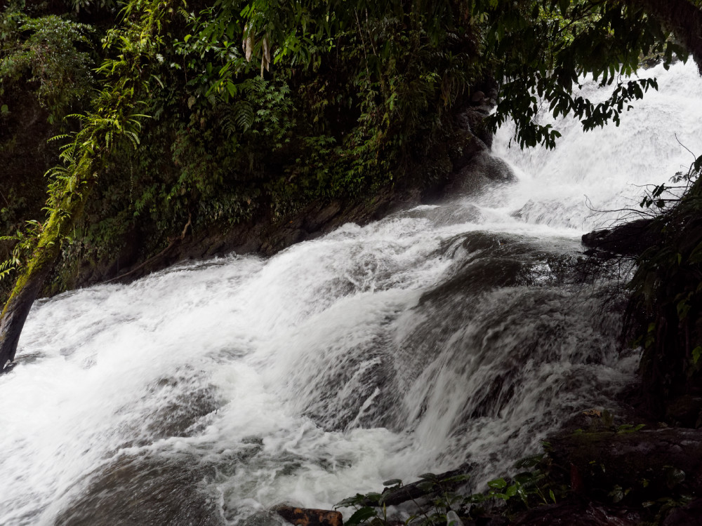 Vom Hochland der Toraya geht es in vielen Serpentinen durch eine herrliche Landschaft hinunter nach Palopo an der Ostküste Sulawesis. Hier besuchten wir einen Markt. Auf der Weiterfahrt nach Norden zog es zu, und auf dem Anstieg in die Berge Zentral-Sulawesis wurde das Wetter wirklich mies. So hielt es sich bis nach Pendolo am Poso-See, den wir erst am späten Nachmittag erreichten. Von da aus waren es nochmal fast zwei Stunden bis Sirui Beach in der Nähe von Tentena am Nordende des Sees, wo wir übernachteten.
