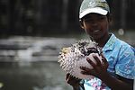 Tagsüber kann man eine Fahrt mit dem Longtail-Boot über den Krabi-Fluss und durch die Mangroven unternehmen. Es gibt eine sehenswerte Höhle, in der man Zeugnisse einer prähistorischen Kultstätte gefunden hat. Im Dickicht unterhalb des Höhleneingangs sahen wir einen ca. 2 m langen Waran, und in den Mangroven gibt es Javaner-Affen. Man kann mit dem Boot auch eine Fischfarm besuchen, sich einen Kugelfisch zeigen lassen und leckeren Fisch und Meeresfrüchte genießen.