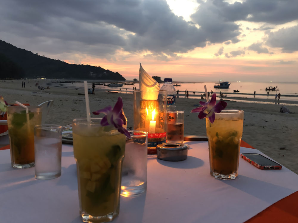 Aber das einfache Hotel Pensiri war in Ordnung, sauber, nette Leute. Fußweg zum Strand ca. 10 Minuten ... und der war schön! Breit, lebhaft, aber nicht zu viel Rummel, eine Reihe von Restaurants ... gut gespeist haben wir im Good View Ocean, und auch die Cocktails dort waren vorzüglich. Verführerisch der Passion Fruit Mojito. - Übrigens stört der nahe Flughafen überhaupt nicht, da die Maschinen nicht über den Ort hereinkommen und abheben.