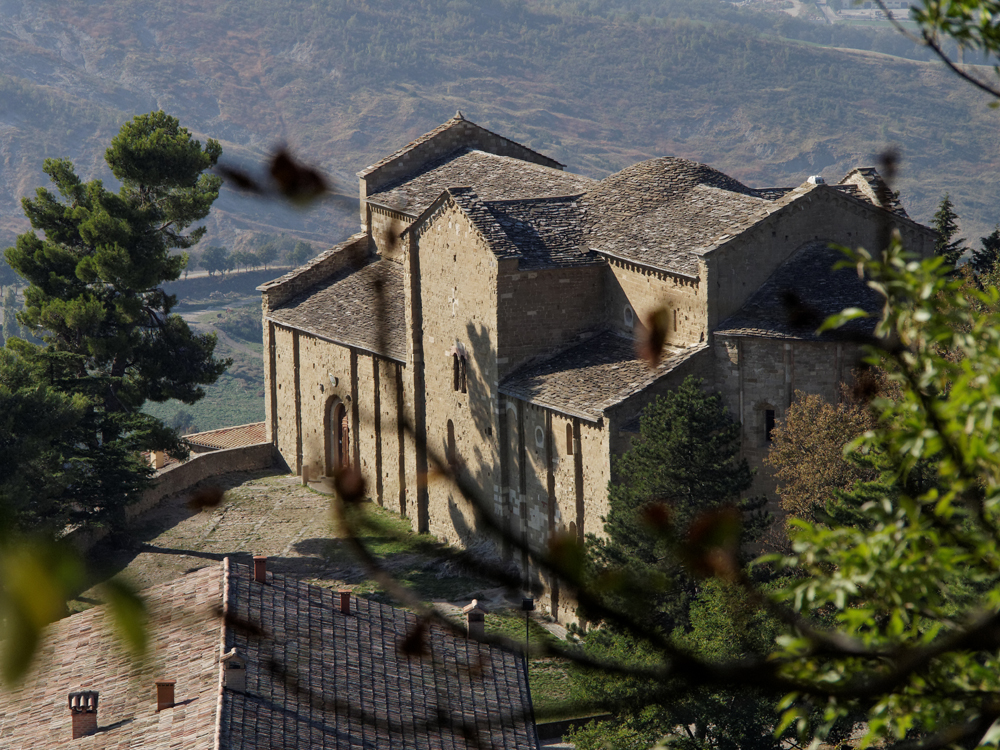 Das mittelalterliche San Leo liegt in den nördlichen Marken spektakulär auf einem schrägen Felsrücken, gekrönt von einer Festung. Im Ort gibt es neben dem Dom San Leone aus dem 12. Jh. noch eine Pieve (= Pfarrkirche mit Taufstein und Friedhof) aus dem 9. Jh.. Die Ortsmitte wird von der Piazza Dante gebildet, an der das kleine, angenehme Hotel Castello liegt.